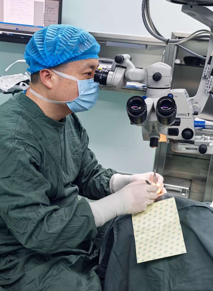2025年6月,郑州普瑞眼科医院张彦辉主任成功为一名曾接受过角膜移植手术的60岁患者杨女士,实施了二次角膜移植手术。由于患者首次供体角膜移植术后,出现上皮愈合不良、反复治疗效果不佳,甚至并发真菌感染,眼部条件极为复杂,传统的人源供体角膜难以满足移植要求。在这一背景下,张彦辉主任果断采用我国完全自主研发的生物角膜——艾欣瞳,并顺利完成手术。