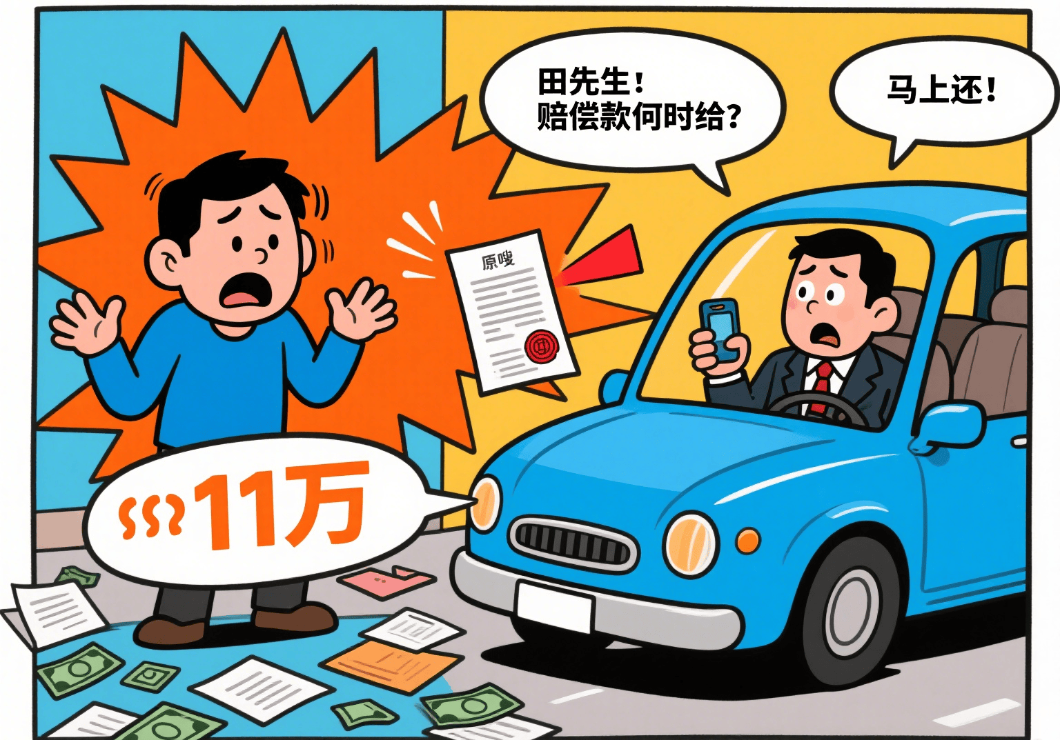 随后,法务专员拨通田先生电话:“田先生您好,我是合兴曌晟法务,受吕先生委托处理交通事故赔偿尾款事宜,您目前仍拖欠的11万元赔偿款,按协议约定已逾期多月,还请尽快履行付款义务。”田先生听闻是法务人员,语气慌张却仍想推脱:“我一直在凑钱,就是还没凑够,再给我点时间。”话音刚落便匆匆挂断电话。